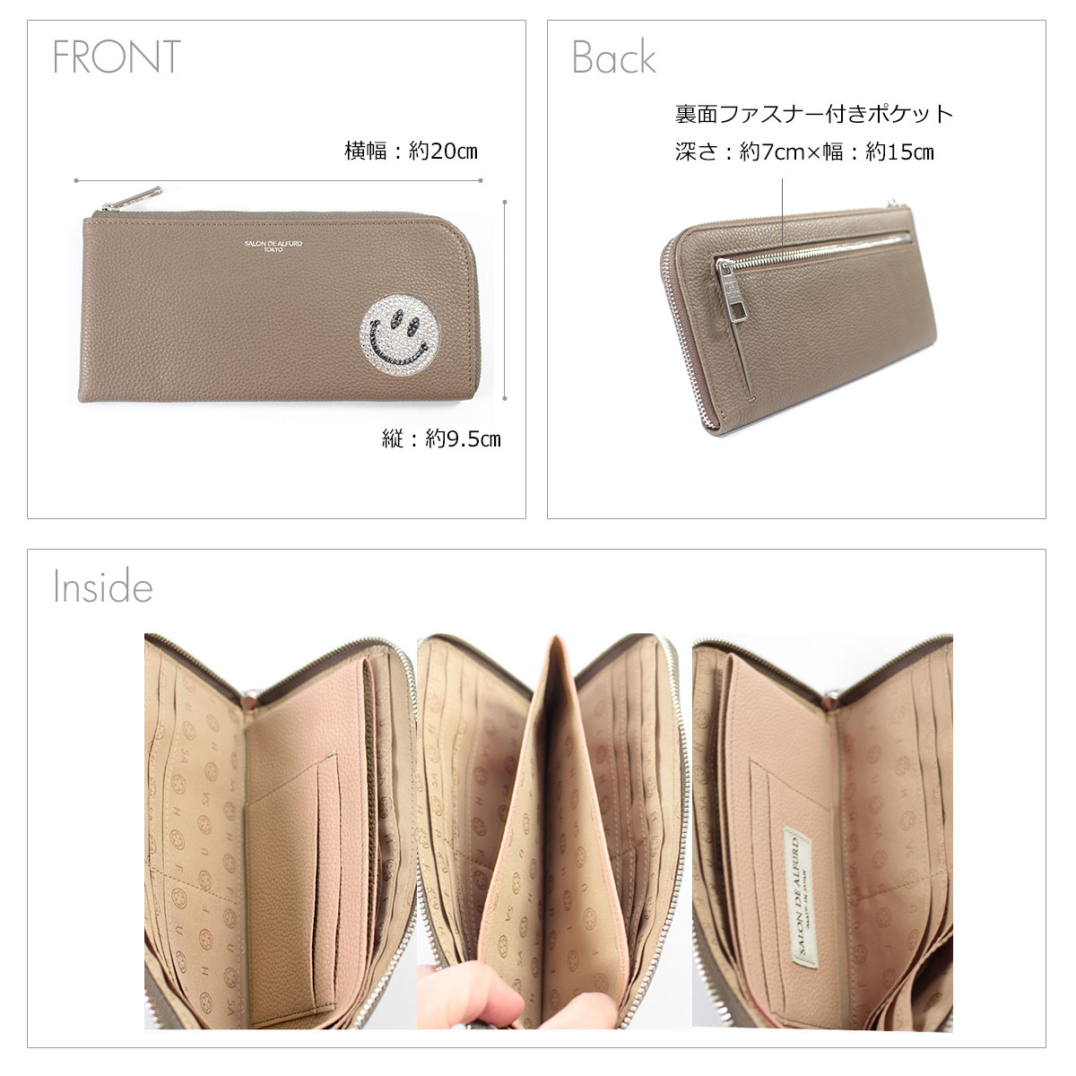 製造 Made in China (中国製) 素材 表地 スペイン製カーフレザー(牛革) 裏地 レザー:スペイン製カーフレザー(牛革) 生地:ポリエステル100% その他 スマイル:スワロフスキーⓇ・クリスタル サイズ(約) 本体 縦(中央)・・約9.5cm 横・・約20cm マチ・・約1.5cm 仕様 外側 裏面ファスナー付きポケット:幅約15cm×深さ約7cm 内側 カードサイズポケット・・16箇所 オープンポケット・・3箇所 裏面ファスナーポケット・・1箇所 補足情報 ○画面上と実物では色の具合が異なって見える 場合があります。