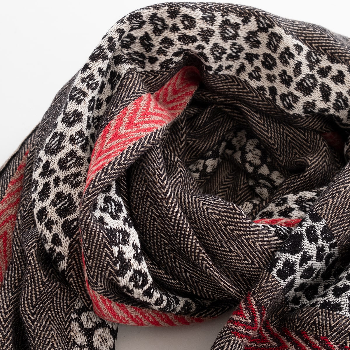 ヘリンボーン柄とレオパード柄をジャガード織りで表現。