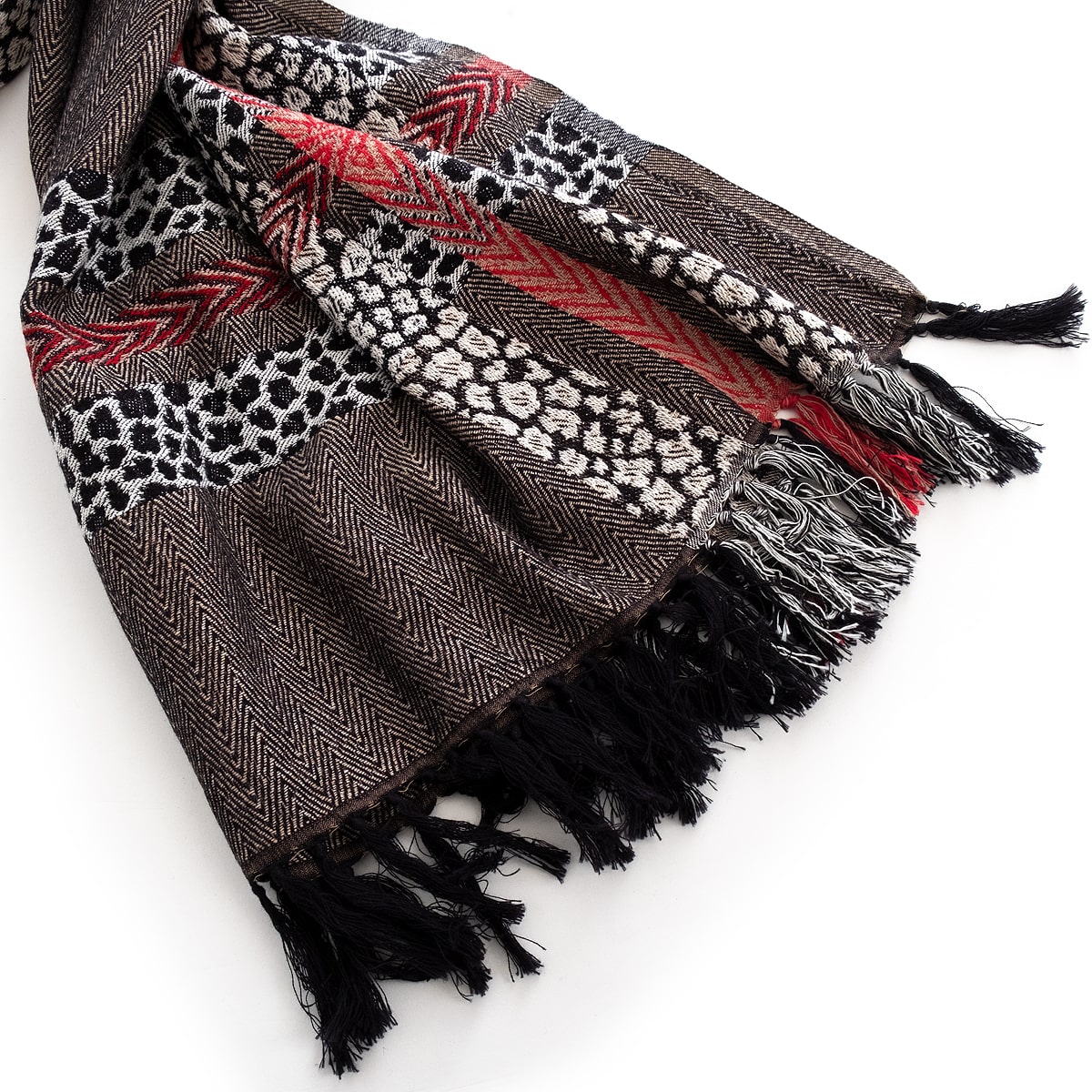 Iroquois HERRINGBONE JQ STOLE (2色 BEIGE/BLACK) 880202 イロコイ 限定商品 ヘリンボーン ジャガード ストール レオパード 大判ストール マフラー 雑貨 インド メンズ 送料無料