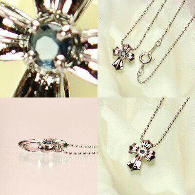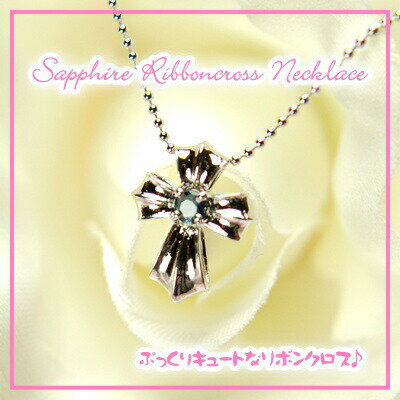 天然サファイヤリボンクロスネックレス【サファイヤ】【サファイア】【ネックレス】【ペンダント】【クロス】【9月】【誕生日プレゼント】【9月誕生石】【あす楽対応】【RCP】