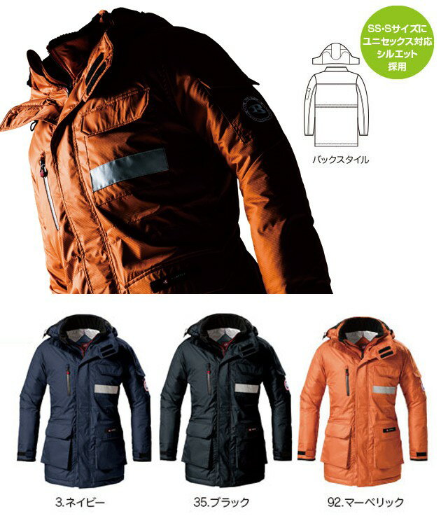 適応サイズ(cm) サイズ バスト 着丈 袖丈 肩幅 SS 106 74 58 44 S 112 77 60 46 M 118 80 61 50 L 124 82 63 52 LL 130 84 65 54 3L 136 86 67 56 4L 142 88 67 58 5L 148 88 67 60 商品詳細 メーカー BURTLE(バートル) 品番 7211 素材 表地:マイクロドットシェル、PUコーティング(軽量、防風、保温耐水圧2,000m/m) 裏地:全天候型保温素材(サーモトロン・ラジポカ)、帯電防止(メガーナ) 混率 ポリエステル100% 特徴 軽量・防風・保温設計 裏地に全天候型保温素材「サーモトロン ラジポカ」採用 裏地に静電気防止素材「メガーナ」採用 フードと衿を一体化させた独自のスマートフィルム 首周りに保温性の良いマイクロブロックフリースを採用 男女ユニセックス仕様 サイズ SS,S,M,L,LL,3L,4L,5L カラー ネイビー(3)、ブラック(35)、マーベリック(829 こちらは【4L〜5L】の販売ページです。
