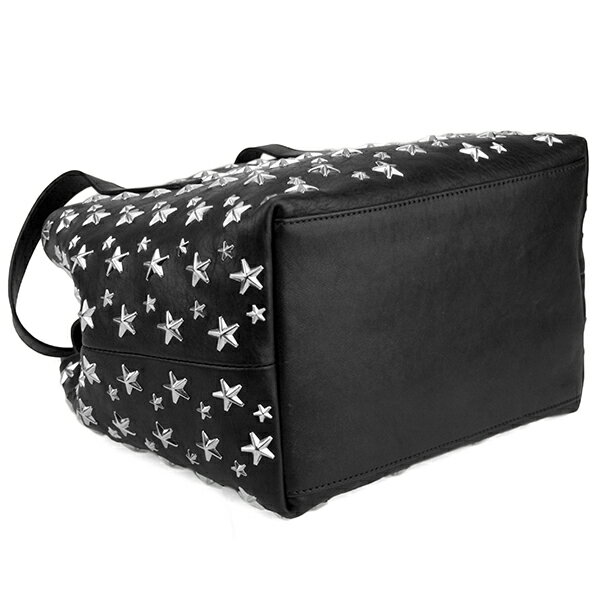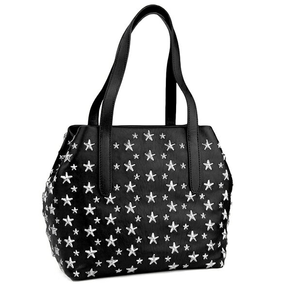シンプルなブラックレザーに散りばめられたサイズの異なるスタースタッズが存在感を放つお洒落なトートバッグ。