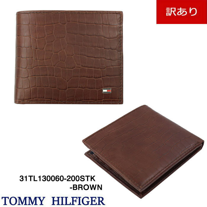 【訳あり返品不可】 st-165 トミーヒルフィガー 二つ折り財布 31TL130060 200STK BROWN TOMMY HILFIGER クロコデザイン ブランド
