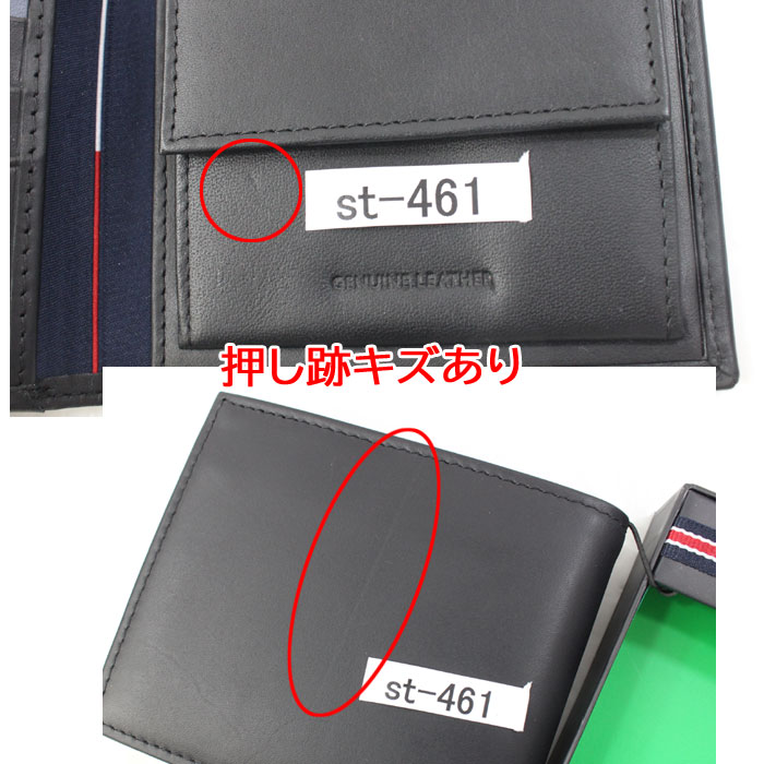 【訳あり返品不可】 st-461 TOMMY HILFIGER 二つ折り財布 31TL25X005 BLACK トミーヒルフィガー レザー 型押しロゴ